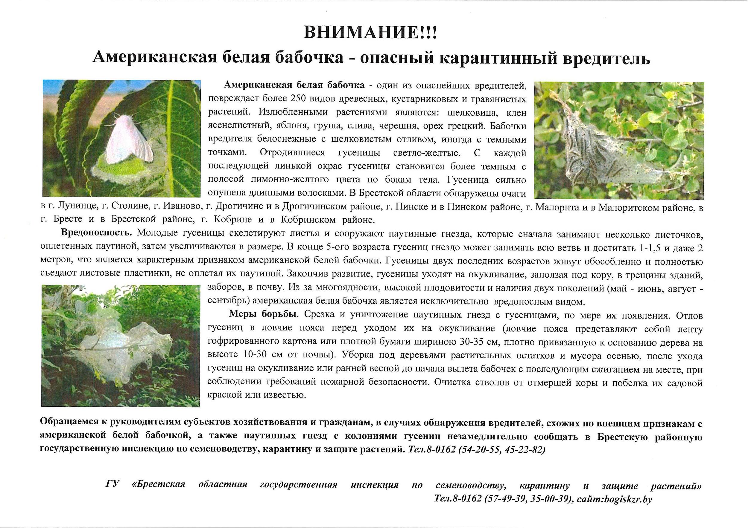 Американская белая бабочка — опасный карантинный вредитель!